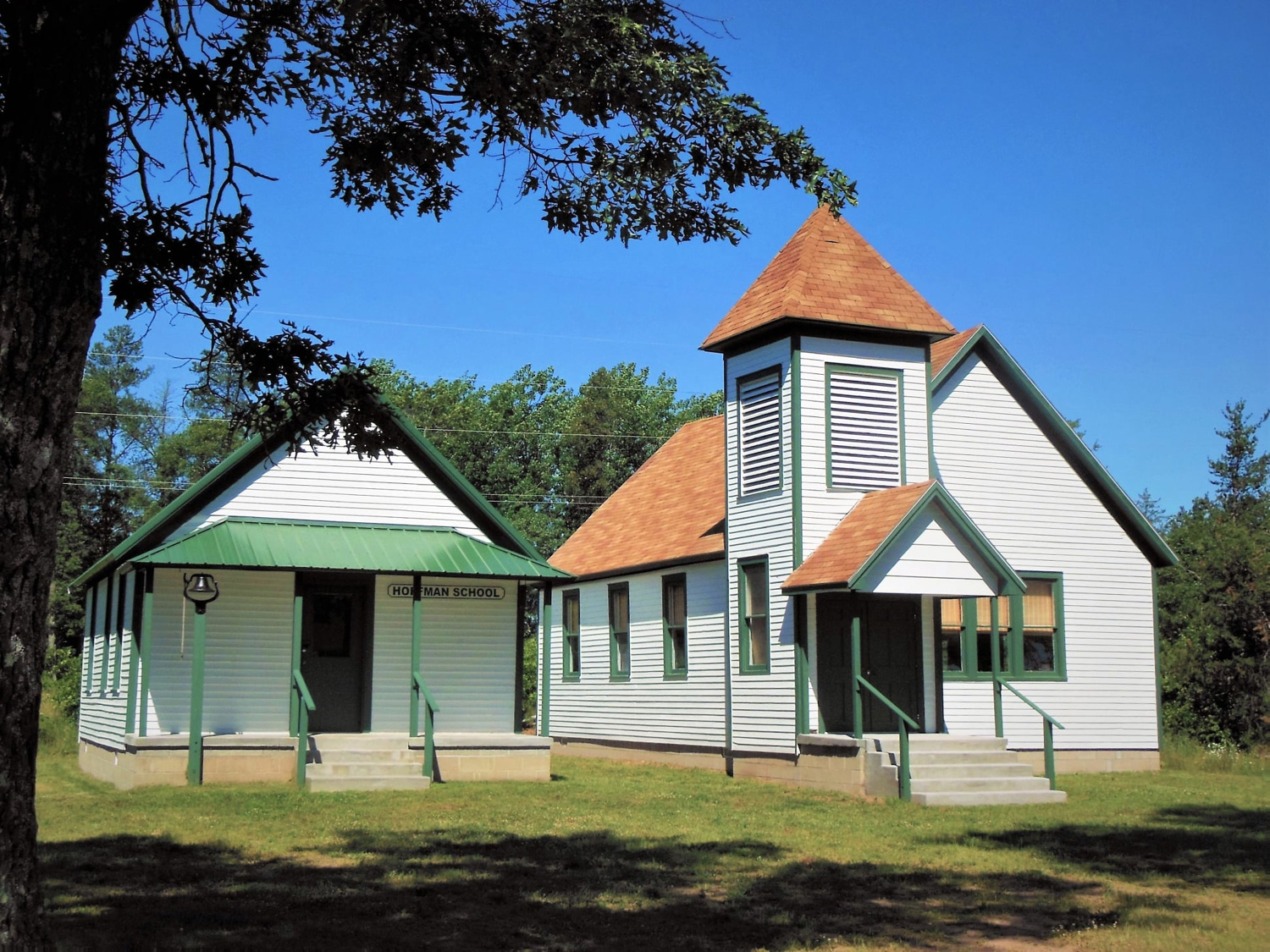 Wascott’s Town Hall was constructed of cedar logs in 1942 as a WPA project. There is a massive stone fireplace inside. In recent years, a kitchen and large addition have been added to accommodate local events. Across the road is the Wascott Historical Park consisting of the Community Church which was built in 1914, and the Hoffman one-room country schoolhouse dating back to 1896.